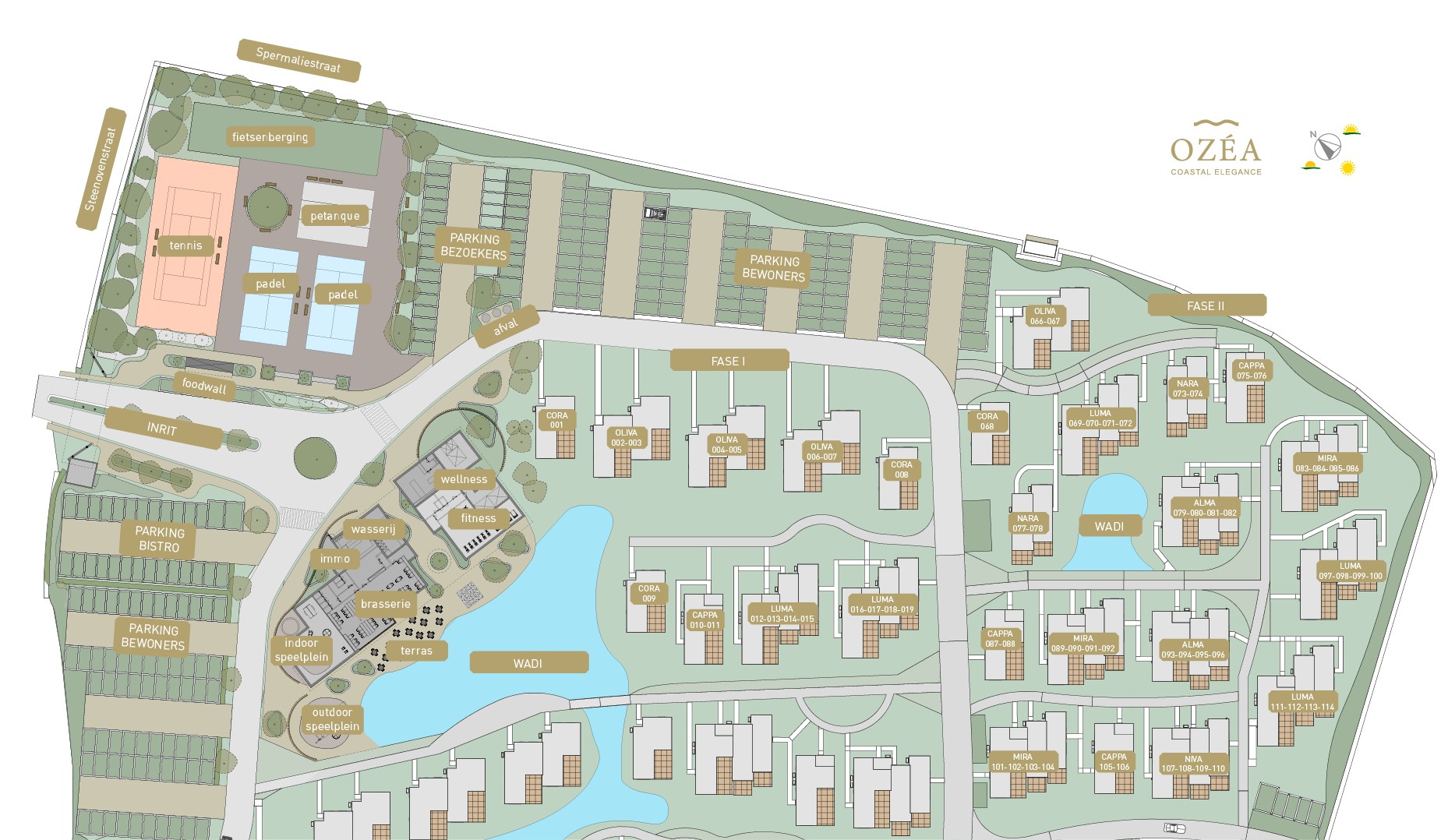 De ontwikkeling van Ozéa verloopt in verschillende bouwfases. In fase I worden 19 entiteiten gerealiseerd, verdeeld over vijf types. In fase II komen er 49 entiteiten, verdeeld over 16 gebouwen en 8 types. Alle woningen worden gebouwd met oog voor kwaliteit, duurzaamheid en comfort.